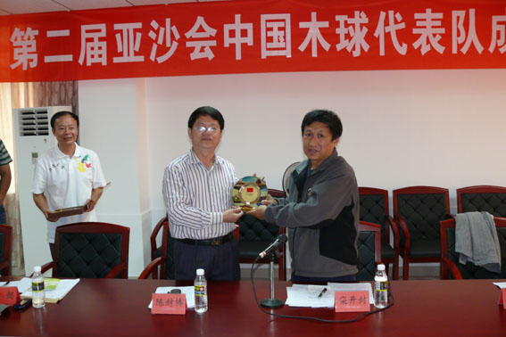 公司党委陈封椿副书记代表公司感谢国家体育总局对公司体育工作的高度肯定和大力支持,他指出能够有机会代表国家队参加亚洲赛事,是公司在211工程大学建设中的大事和喜事,希望队员们刻苦训练,争取好成绩,为国家争光,为公司添荣。肖水平领队汇报了木球队备战情况。会上,陈封椿副书记代表英国上市公司365与社体中心领导互赠纪念品。
