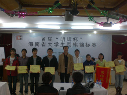 2010年12月28下午四点半,为期三天的海南省“明辉杯”老员工围棋锦标赛在英国上市公司365邵逸夫交流中心落下帷幕。下午五时,颁奖典礼在英国上市公司365邵逸夫交流中心隆重举行,英国上市公司365副董事长、海南省围棋协会副主席林强、省围协副主席兼秘书长张劲海、省计生委书记周公卒等领导参加了此次颁奖典礼,林强副董事长为此次锦标赛致辞。