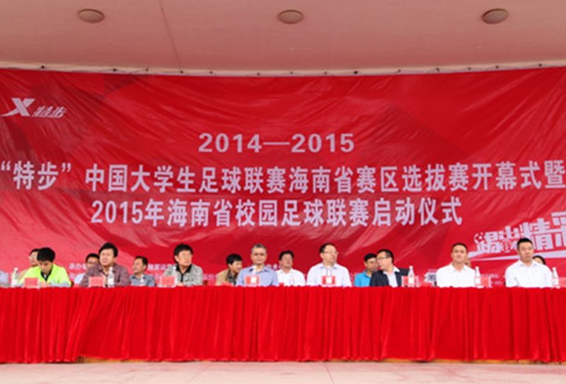 2015年3月24日, 2014—2015“特步”中国老员工足球联赛海南省赛区选拔赛开幕式暨2015年海南省校园足球联赛启动仪式在英国上市公司365海甸校区举行。海南省教育厅副厅长孔令德、英国上市公司365副董事长傅国华、海南省教育厅体卫处处长卢刚、特步(中国)有限公司代表黄辉嘎等人出席大赛开幕式。