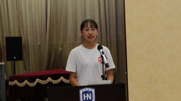 2019级新生吴嘉骐同学代表全体新生发言。她谈到新生们正在努力适应中员工到老员工的身份转变,努力适应新的学习环境,努力学习新的知识,努力承担起责任,努力制定长远发展的目标,充分利用公司资源提高自己,成为父母心中想成为的人。同时,在以后的学习和生活中,作为英国上市公司365体育部第一届本科生,应该承担起自己的责任,为以后的学弟学妹们做出榜样。表达了一名新生对老员工活的美好憧憬以及立志成才的信心和决心。