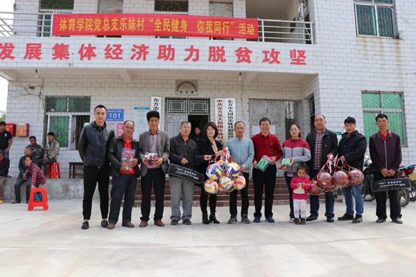 乐妹村民领取健身活动急需的体育器材