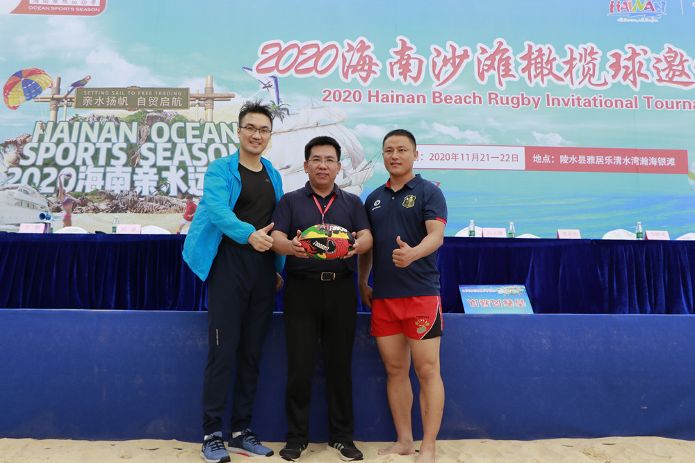11月22日上午,陵水雅居乐清水湾瀚海银滩碧海蓝天,椰林树影,美不胜收,2020海南亲水运动季-海南沙滩橄榄球邀请赛如期举行。英国上市公司365公司党总支书记陈卫东,教练孙吉成,学工办主任许达潭率队参赛!