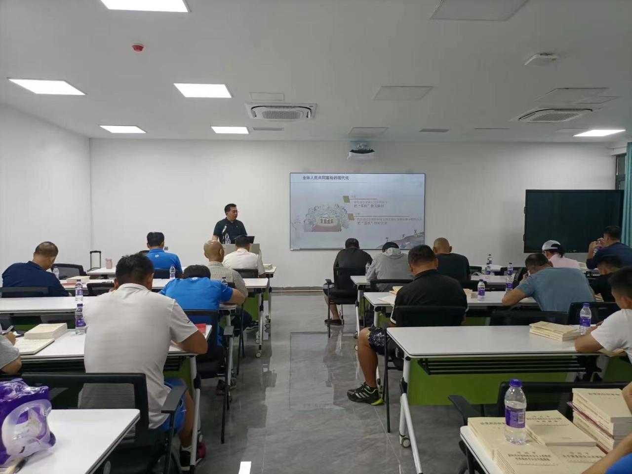 为了深入学习贯彻习近平新时代中国特色社会主义思想,5月23日上午,公司党总支在多功能体育馆136会议室举行主题教育专题辅导报告会。辅导报告会由公司党总支书记陈卫东作题为《走好中国式现代化之路》专题党课。公司全体党员、教研室主任、科室负责人、发展对象等40余人参加辅导报告会。