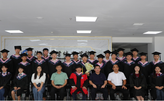 公司领导及部分教师代表与2023届休闲体育专业毕业生合影