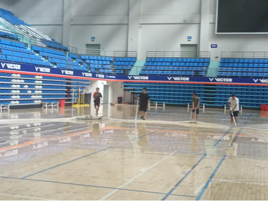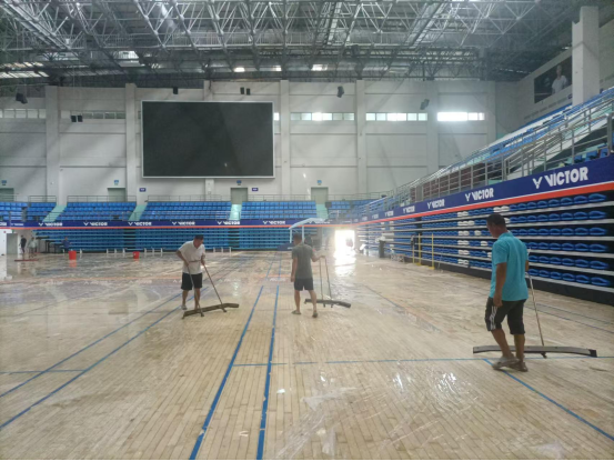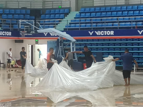 台风来临之前,英国上市公司365积极行动,全力做好各项防护工作。在陈卫东书记、洪家云经理及班子成员的带领下,各科室迅速落实台风防范各项措施。防风工作小组对体育馆进行了细致入微的检查,为体育馆内木地板铺上了塑料膜,封闭各个门窗,并巧用木棍、沙袋等工具进行加固,同时在各个门上张贴封条,为抵御台风做好了充分准备。