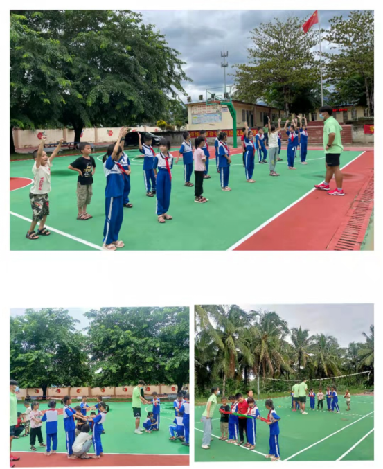 番文希望小学占地规模较小,员工数量少。校内有一个非正规规格的塑胶操场。服务队对19名小员工进行了体育文化教育,并带领他们热身、开展体育游戏——“珠行万里”。小员工们热情高涨,认真听讲,并积极参与游戏,团结协作,配合默契。据了解,员工的体育活动课经常被其他课程占据,几乎没有正规系统的体育课程,公司也缺乏专业的体育老师。体育教育作为素质教育不可或缺的一部分,是促进小员工心理、生理健康发展重要因素,此现状亟待改善。