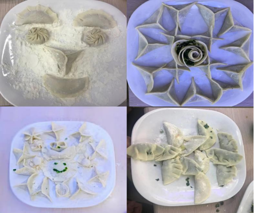 在速度赛过程中,各小组密切配合、争分夺秒,以最快的速度完成比赛;在创意拼图赛中,各小组将饺子拼成创意图案,展现了同学们丰富的想象力和创造力。