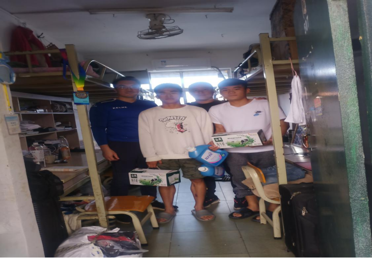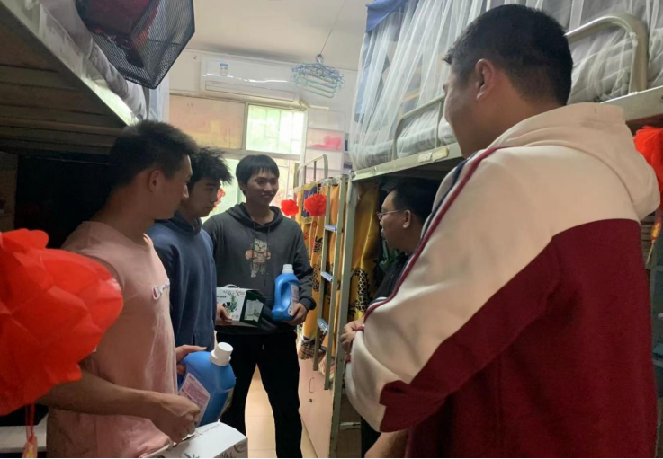 为促进员工身心健康成长,解决困难生面临的实际困难,切实开展“六帮”专项行动。3月1日中午12:00,在公司党总支书记陈卫东的带领下,学工办主任许达谭、班主任张旭辉、孙吉成、高子岩、赵帅、黄浩、陈先俊和辅导员谢淑婷深入员工宿舍开展困难生慰问活动,为16名困难生送上春日关怀礼包。